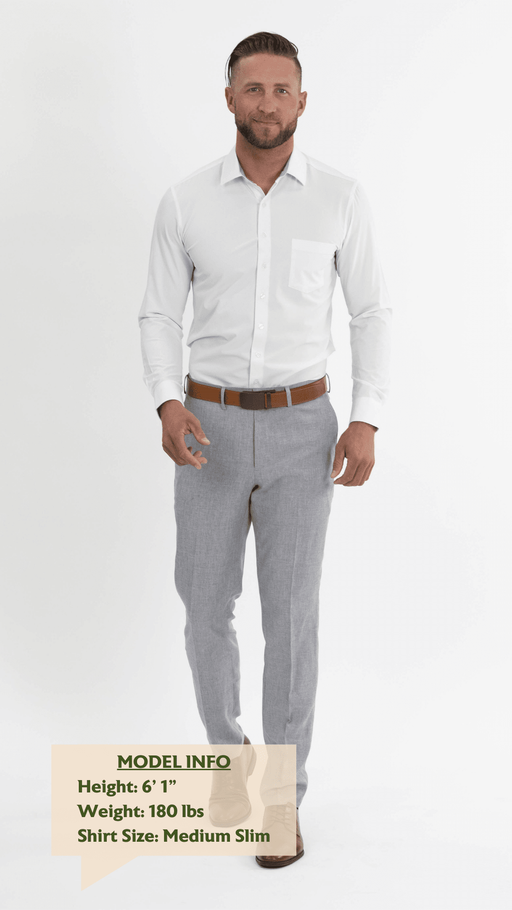 The Hustle Sport Shirt offers all the key features of the Hustle Dress Shirt with smart updates. Made from moisture-wicking, quick-dry, and stretchy fabric, it keeps you comfortable throughout the day. Its stain-resistant finish ensures durability. With a hidden button-down collar, no pockets, and a slightly shorter cut, it works well tucked or untucked. A versatile shirt for everyday wear.