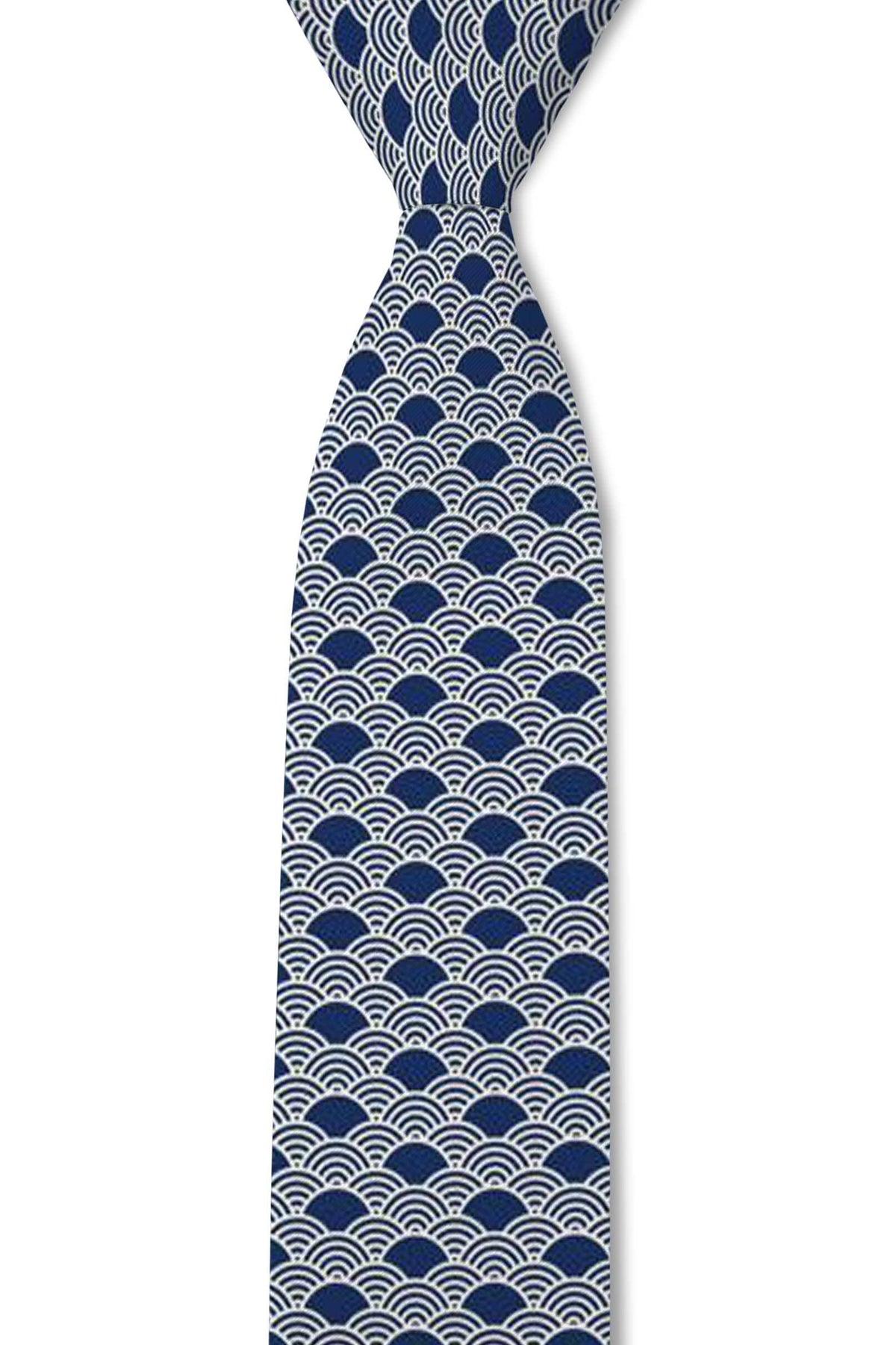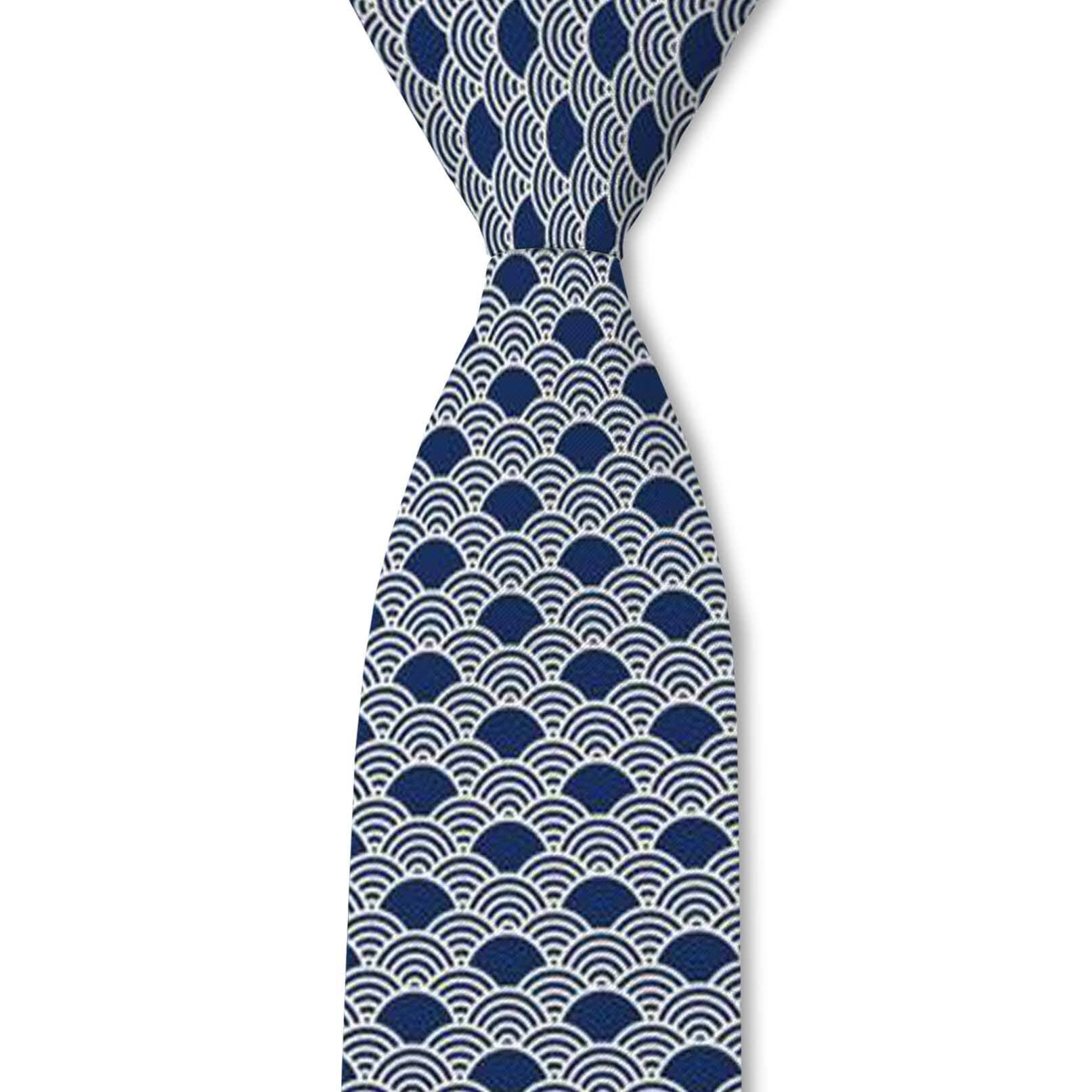 Introducing the Kaito Japanese Wave Pattern Tie. This beautifully crafted tie features an intricate blue and white wave pattern, inspired by the iconic Seigaiha, symbolizing strength, resilience, and good fortune in Japanese culture. Perfect for those who appreciate unique designs with cultural significance, the Kaito tie brings a refined yet artistic touch to your wardrobe. Kaito - Japanese Blue Wave Tie - Tough Apparel